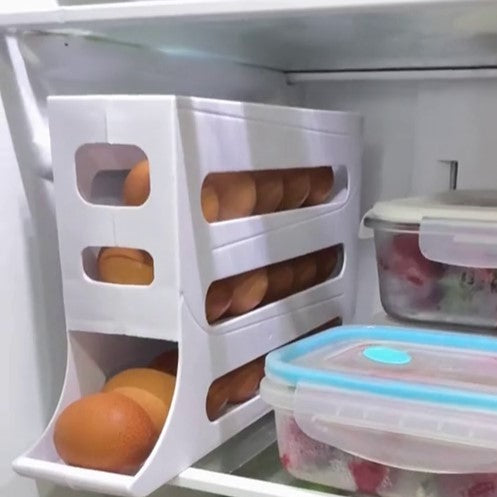 Sabemos lo frustrante que es abrir el refrigerador y encontrar huevos esparcidos, cajas de cartón ocupando espacio innecesario y el temor constante de que se rompan al buscar otros alimentos. Este organizador dispensador automático transforma esa experiencia por completo. Con su innovador sistema de gravedad, cada huevo se desliza suavemente hacia la bandeja de salida cuando sacas uno, manteniéndolos siempre organizados, accesibles y seguros. Imagina una nevera donde todo está en su lugar, donde tus huevos lucen impecables y donde recuperas ese espacio valioso para otros alimentos. No es solo un organizador, es la solución que estabas esperando para tener una cocina más funcional y moderna.